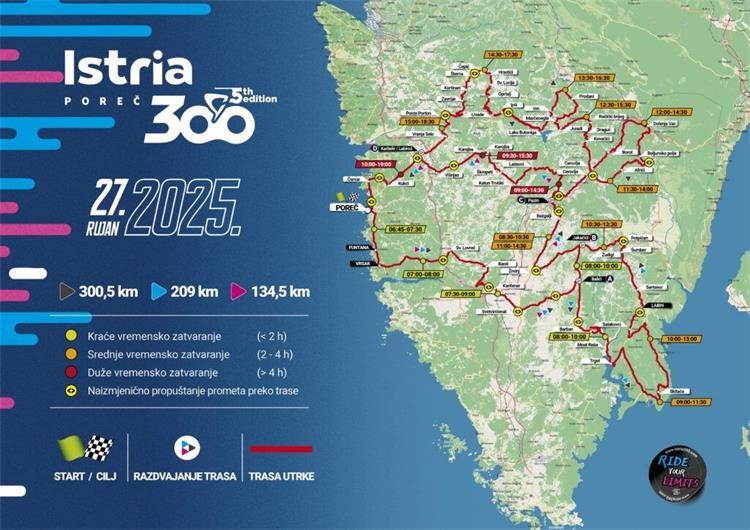 Start i cilj ovog cestovnog biciklističkog maratona bit će u Gradu Poreču, a na kojem će ove godine nastupiti oko 4.000 sudionika iz Hrvatske i inozemstva. Biciklisti na dan utrke startaju u 7:00 sati s glavnog gradskog trga u Poreču, a koncept maratona je zasnovan na tri utrke različite dužine koje startaju istovremeno te će na dan utrke biciklisti samostalno moći odlučiti koju će od tri predložene trase (135, 209 i 300 km) odvoziti i to odlukom na licu mjestu u mjestima račvanja utrka, uz poštivanje vremenskog limita.