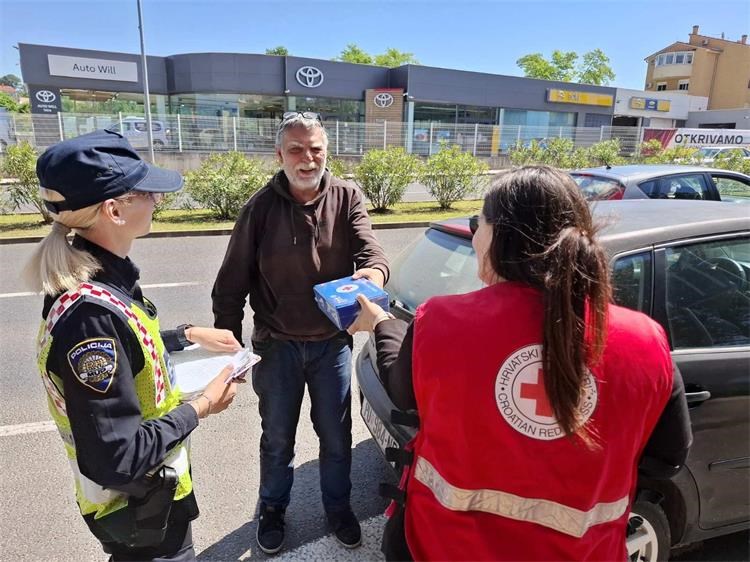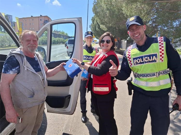 Policijski službenici Postaje prometne policije Pula-Pola su na Cesti prekomorskih brigada zaustavili devet vozila, a vozačima koji nisu imali komplet prve pomoći u vozilu ili nisu imali komplet prve pomoći s važećim rokom trajanja, predstavnici gradskog društva Crvenog križa predali su ispravan (novi) komplet prve pomoći te su upozoreni. Vozačima koji su imali ispravan komplet prve pomoći, uručen je Priručnik za vozače i sve sudionike u prometu koji donosi sve o pružanju prve pomoći u prometu.