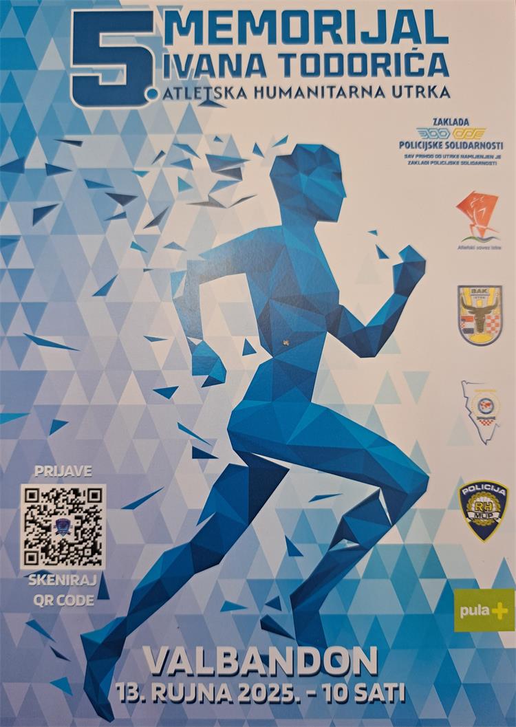 Humanitarna utrka 5. Memorijal Ivana Todorića održat će se u subotu, 13. rujna 2025. godine u 10 sati sa startom i ciljem u bivšem policijskom kampu u Valbandonu, odakle će se trkači uputiti uz more prema štinjanskim tvrđavama. Sudionici mogu birati između dvije staze: glavne utrke od 11.300 metara ili rekreativne utrke od 2.209 metara, a natjecat će se u kategoriji građana i kategoriji policije.